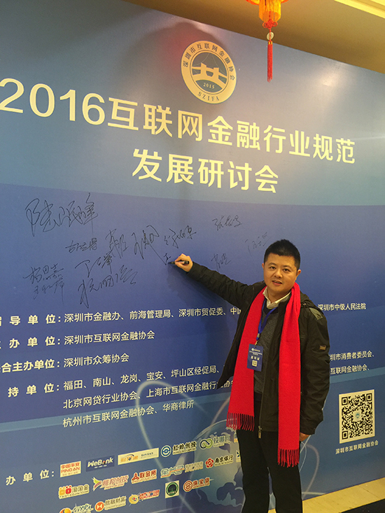 2016年1月27日,互联网金融行业规范发展研讨会在深圳召开,国务院参事、深圳市金融办、中国人民银行深圳市中心支行、深圳银监局、深圳证监局、深圳保监局、深圳经侦局、深圳市中级人民法院、各区经促局、全国各互联网金融协会代表以及会员单位的CEO等出席了本次活动。