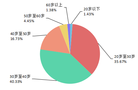 2、20-30岁占比35.67% 30-40岁占比40.33%。