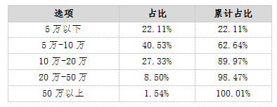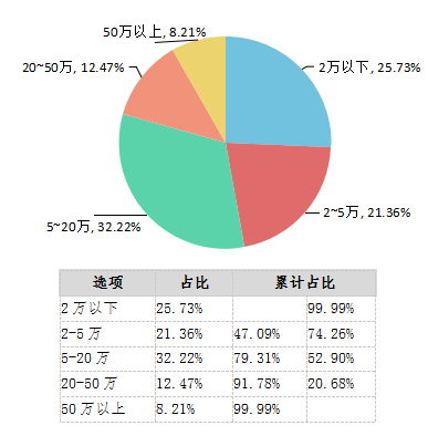 4、年收入5到10万的占比最高,达到40.53%,其次10-20万的区间,占比27.33%。