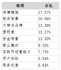 很多“小白”投资人“跟着感觉走”,多看重“用户体验”和“服务态度”,而财会人员最看重的是“保障措施”和“股东背景”,显得更加专业。