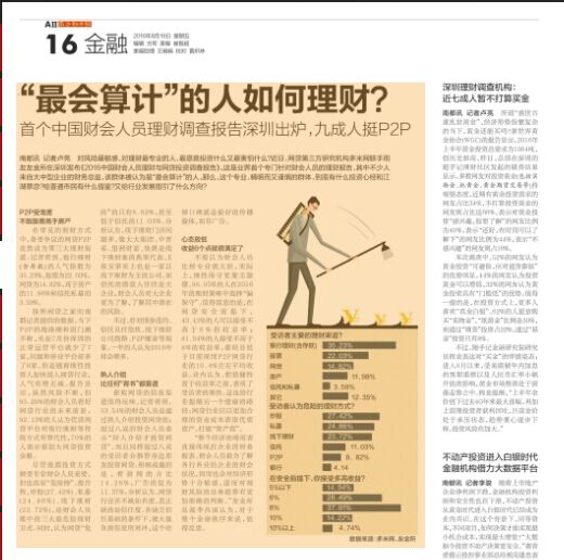 对风险最敏感、对理财最专业的人,最愿意投资什么又最害怕什么?近日,网贷第三方研究机构多米网联手用友友金所在深圳发布《2016中国财会人员理财与网贷投资调查报告》。这是业界首个专门针对财会人员的理财报告,其中不少人来自大中型企业的财务总监,该群体被认为是“最会算计”的人。那么,这个专业、精明而又谨慎的群体,到底有什么投资心经和江湖禁忌?给普通市民有什么借鉴?又给行业发展指引了什么方向?