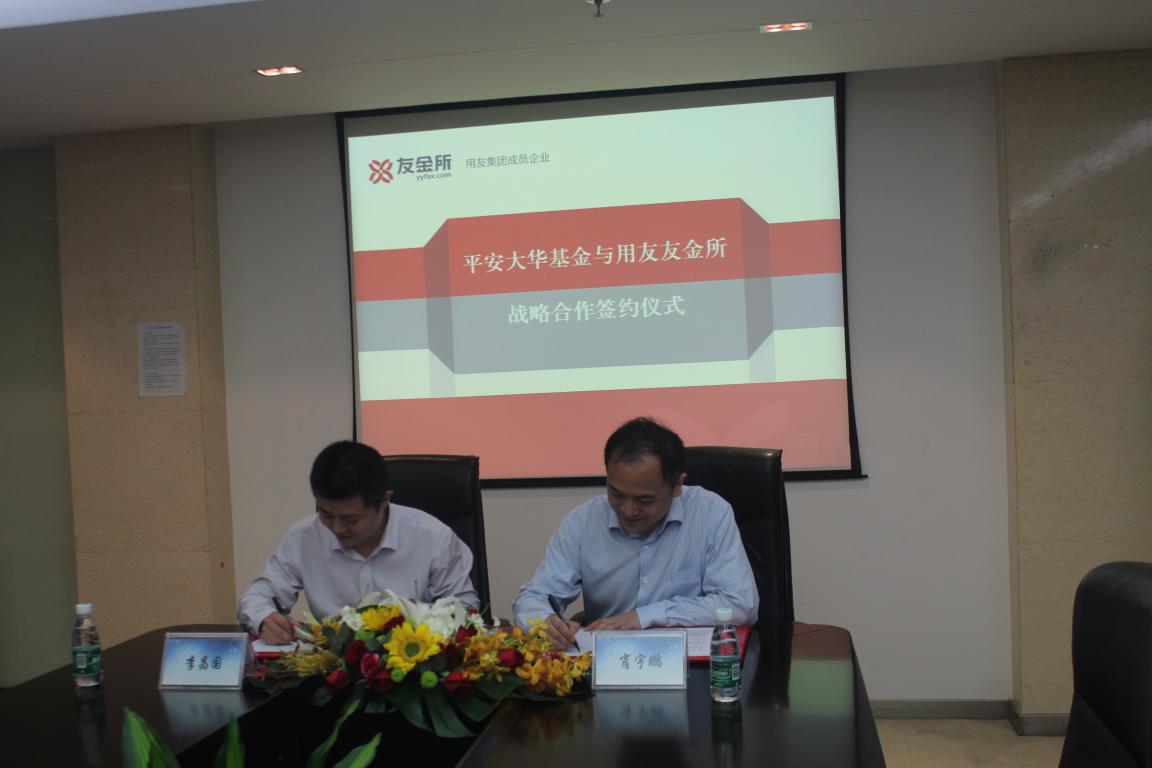 4月2日,用友旗下互联网理财平台友金所(深圳前海用友力合金融服务有限公司)与平安大华基金(平安大华基金管理有限公司)在深圳友金所总部正式签署战略合作协议,友金所总裁李昌国、副总裁张居花、副总裁黄成、副总裁熊伟,平安大华基金副总经理肖宇鹏、市场与互联网金融部总经理叶俊林、产品总监张川出席了签约仪式。